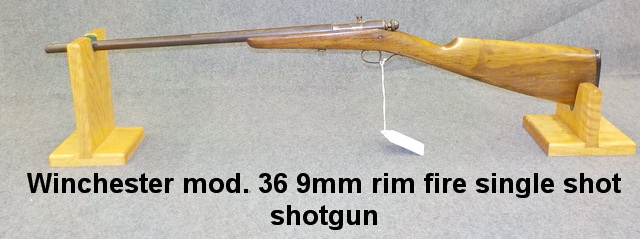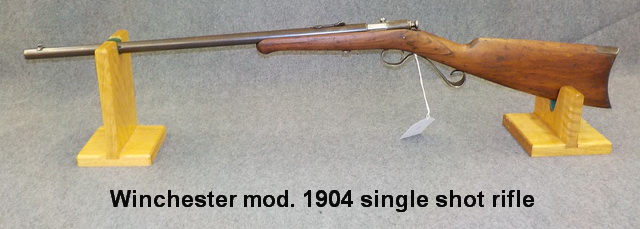 mod. 1904 single shot rifle, Winchester mod. 12 12 ga. full choke pump shotgun