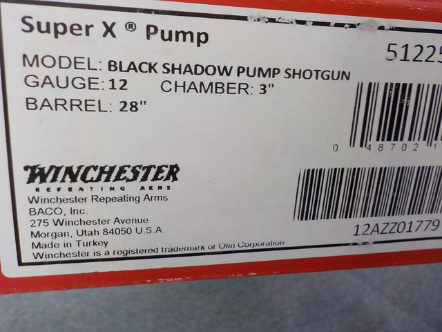 w/ solid rib (original), Winchester Black Shadow Super X 12 ga. 3” pump shotgun