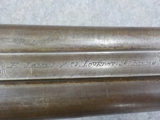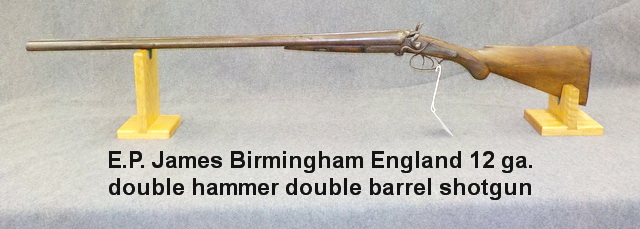 scope (NIB), E.P. James Birmingham England 12 ga. double hammer double barrel