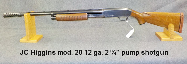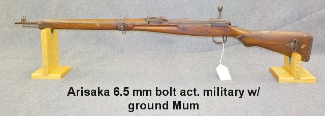 JC Higgins mod. 20 12 ga. 2 ¾” pump shotgun, Japanese Arisaka 6.5 mm bolt act.