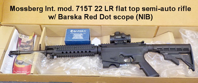 (NIB), Mossberg Int. mod. 715T 22 LR flat top semi-auto rifle w/ Barska Red Dot