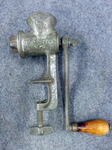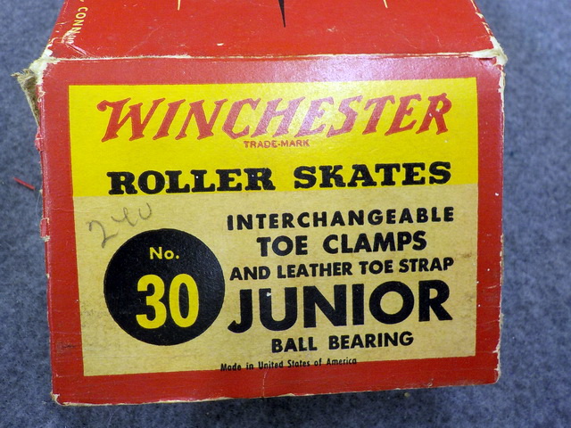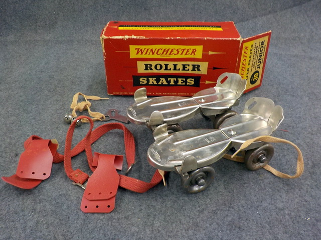roller skates, Winchester meat grinder, C.C.B. & Co. fishing lure in orig. box……