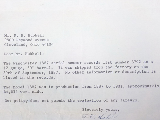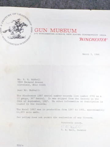 Winchester mod. 1887 12 ga. lever act. shotgun #3792