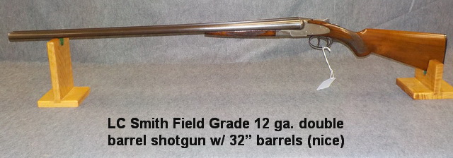 barrel shotgun, LC Smith Field Grade 12 ga. double barrel shotgun w/ 32” barrels