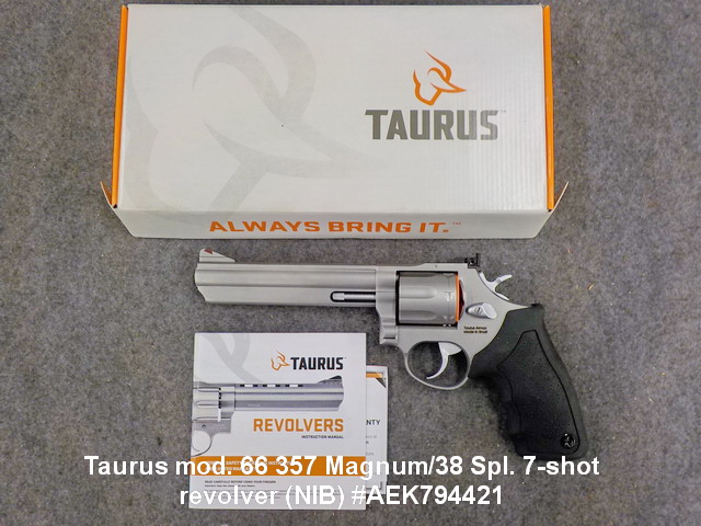 barrel semi-auto handgun (NIB) #214 – 51644, Taurus mod. 66 357 Magnum/38 Spl.