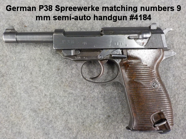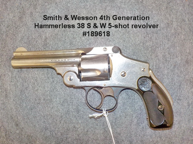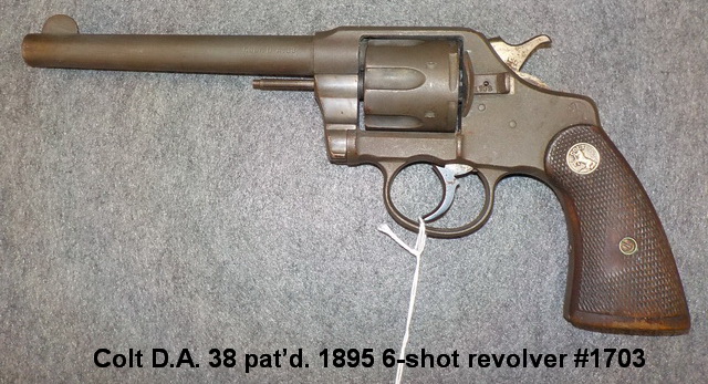 semi-auto handgun #4184, Colt D.A. 38 pat’d. 1895 6-shot revolver #1703, Smith &