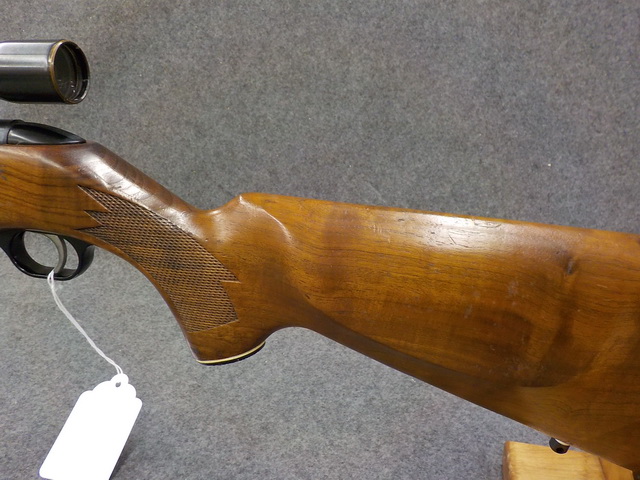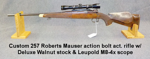action bolt act. rifle w/ Deluxe Walnut stock & Leupold M8-4x scope, Savage mod.
