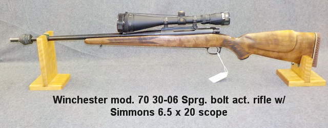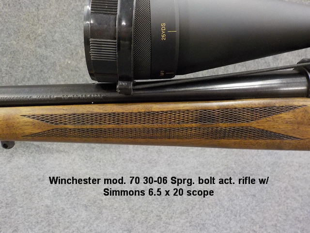 rifle w/ Simmons 6.5 x 20 scope, Winchester mod. 70 30-06 Sprg. bolt act. rifle