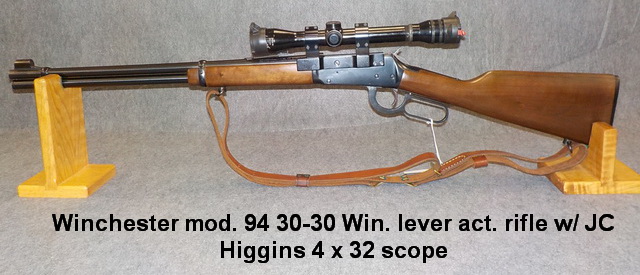 w/ Simmons 6.5 x 20 scope, Winchester mod. 94 30-30 Win. lever act. rifle w/ JC