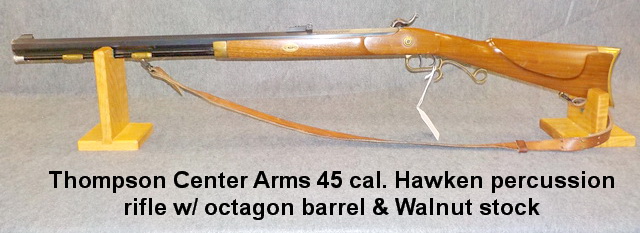 shotgun w/ 28” & 24” Slugster barrels, Thompson Center Arms 45 cal. Hawken