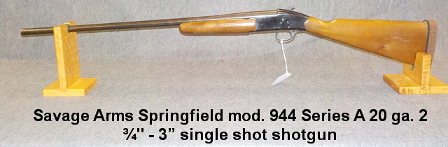 Series H 12 ga. double barrel shotgun, Savage Arms Springfield mod. 944 Series A