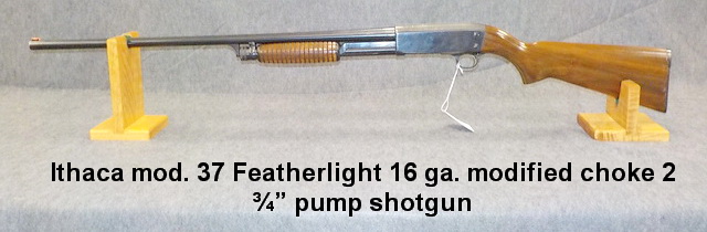 20 ga. 2 ¾" - 3” single shot shotgun, Ithaca mod. 37 Featherlight 16 ga.