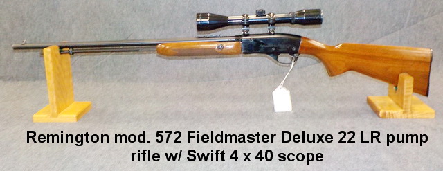 rifle w/ Swift 4 x 40 scope, Remington Fieldmaster mod. 572 22 pump rifle w/