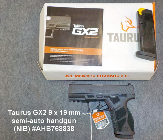 #TDM36091, Taurus GX2 9 x 19 mm semi-auto handgun (NIB) #AHB768838, Taurus 38