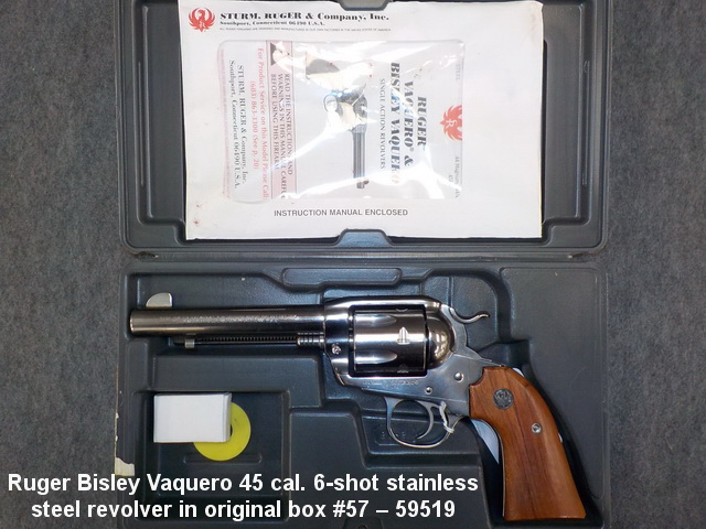 Ruger Bisley Vaquero 45 cal. 6-shot stainless steel revolver in original box #57