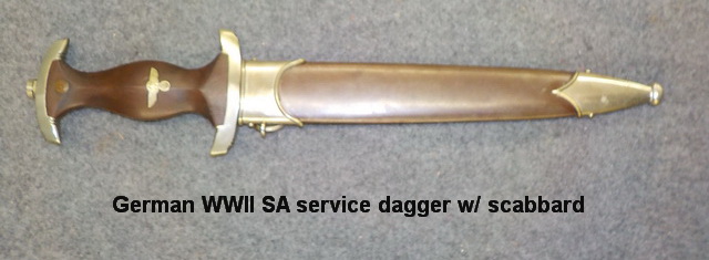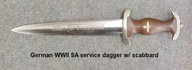 WWII SA service dagger w/ scabbard, 22” x 30” Nazi flag…AMMO: