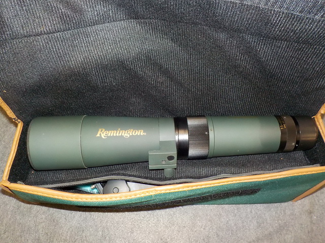 S4000-E pellet rifle (NIB), Remington 15 – 45 x 60 mm spotting scope, possibles