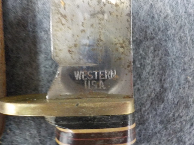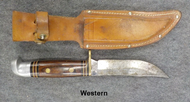 bag w/ muzzleloader items, Western hunting knife & sheath, Winchester AA 50