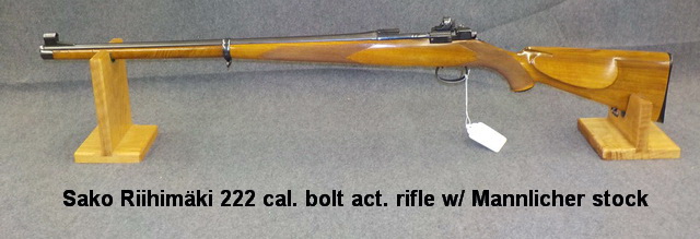 Riihimäki 222 cal. Deluxe bolt act. rifle, Sako L46 222 cal. bolt act. rifle w/
