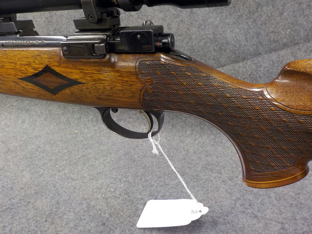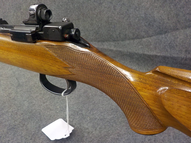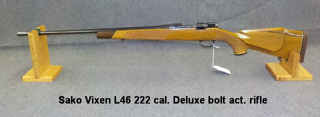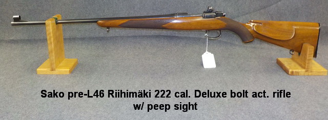 rifle w/ peep sight, Sako Vixen L46 222 cal. Deluxe bolt act. rifle, Sako