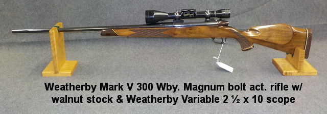 stock 222 Mag. bolt act. rifle w/ scope, Weatherby Mark V 300 Wby. Magnum bolt