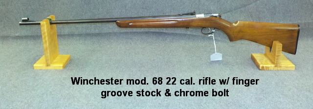 w/ chrome bolt, Winchester mod. 68 22 cal. rifle w/ finger groove stock & chrome