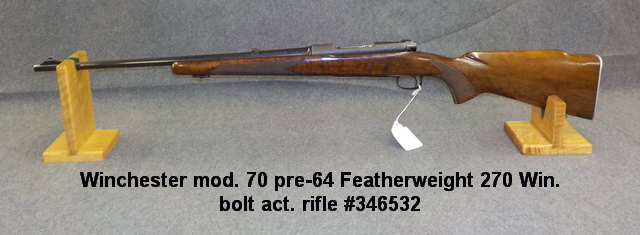 70 pre-64 Featherweight 270 Win. bolt act. rifle #346532, Winchester mod. 70