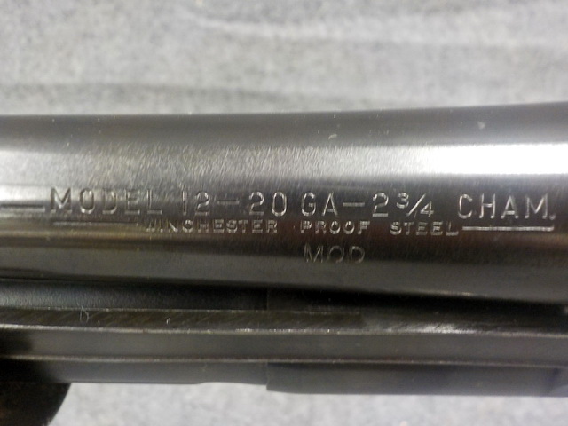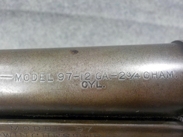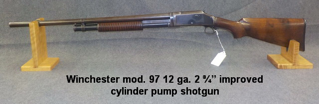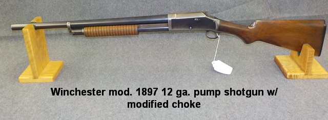 mod. 1897 12 ga. pump shotgun w/ modified choke, Winchester mod. 97 12 ga. 2 ¾”