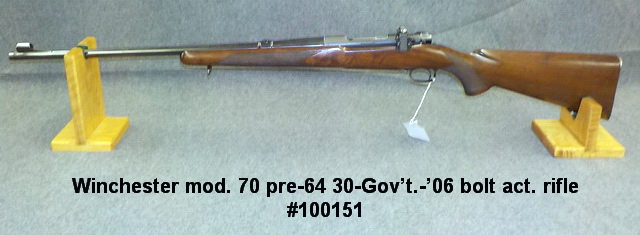 30-Gov’t.-’06 bolt act. rifle #100151, Winchester mod. 70 pre-64 30 Gov’t. 06