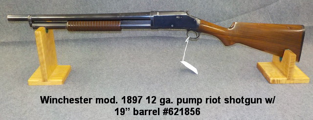 Winchester mod. 1897 12 ga. pump riot shotgun w/ 19” barrel #621856, Winchester