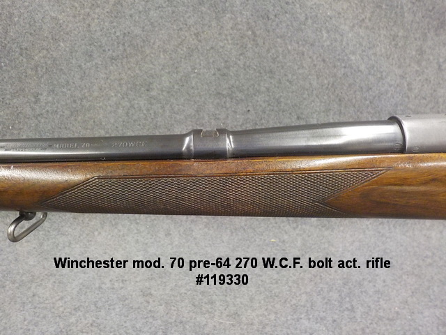 pre-64 270 W.C.F. bolt act. rifle #119330, Winchester mod. 70 pre-64