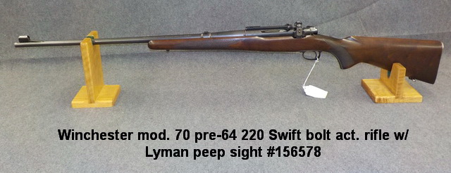 rifle w/ Lyman peep sight #156578, Winchester mod. 70 pre-64 220 Swift bolt act.