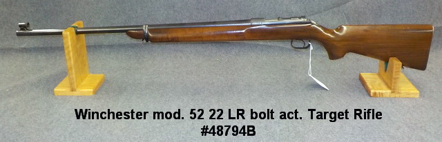 52 22 LR bolt act. Target Rifle #48794B, Winchester mod. 52 22 LR bolt act.