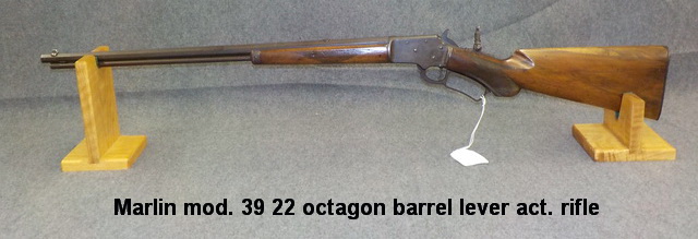 39 22 octagon barrel lever act. rifle, Marlin mod. 39A 22 LR lever act. rifle,