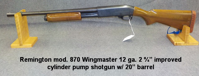 The Target master 22 cal. bolt act. rifle, Remington mod. 870 Wingmaster 12 ga.