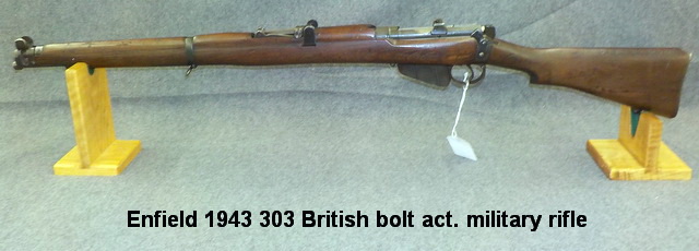 lever act. rifle w/ 26” octagon barrel, Enfield 1943 303 British bolt act.
