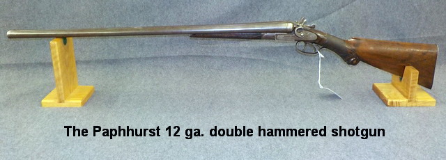 rifle, Whitney Arms 32 Rim Fire falling block rifle, The Paphhurst 12 ga. double