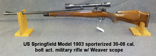 rifle w/ Weaver scope, US Springfield Armory Model 1903 w/ PF Sedgley Phila.