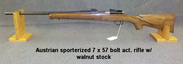 maple percussion long rifle, Austrian sporterized 7 x 57 bolt act. rifle w/
