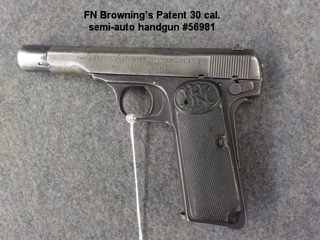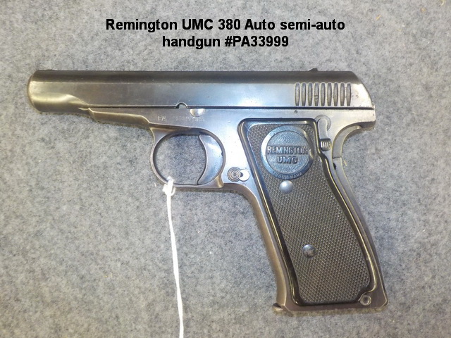 box #K65855, Remington UMC 380 Auto semi-auto handgun #PA33999, FN Browning’s