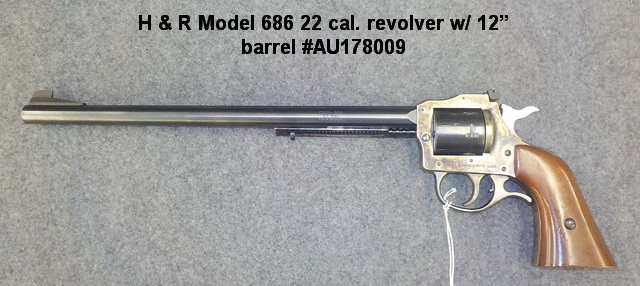 Patent 30 cal. semi-auto handgun #56981, H & R Model 686 22 cal. revolver w/ 12”