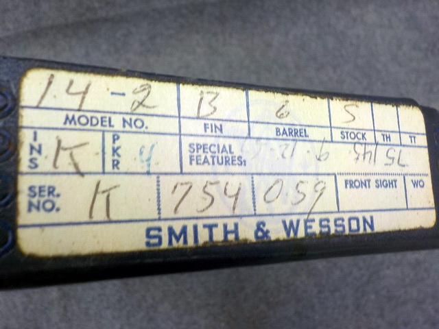 & Wesson mod. 14-2 22 S&W 6-shot revolver w/ 6” barrel #K754059, Smith & Wesson