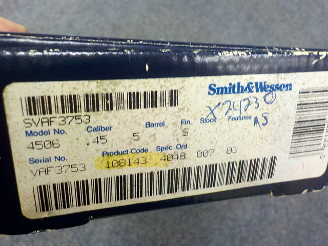 mod. 45-0601 45 Auto semi-auto handgun #VAF3753, Smith & Wesson mod. 4516-2 45