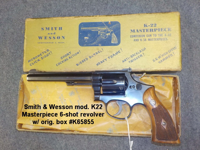 handgun #VKP3341, Smith & Wesson mod. K22 Masterpiece 6-shot revolver w/ orig.
