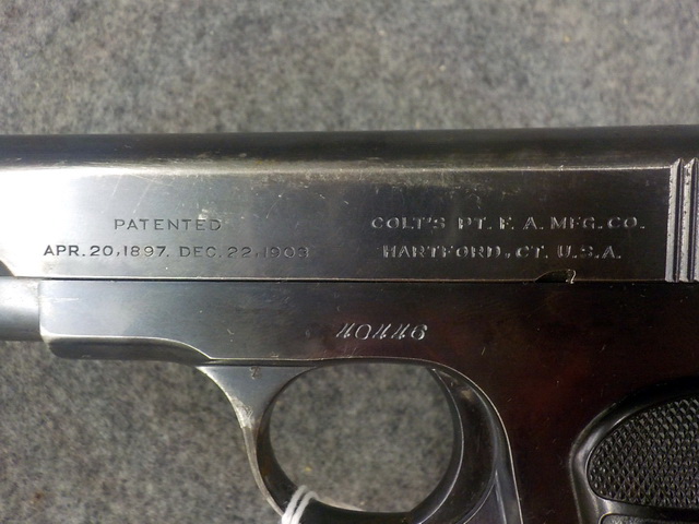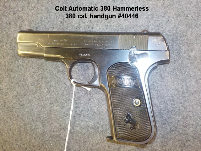 380 Hammerless 380 cal. handgun #40446, Colt New service 45 Colt 6-shot revolver