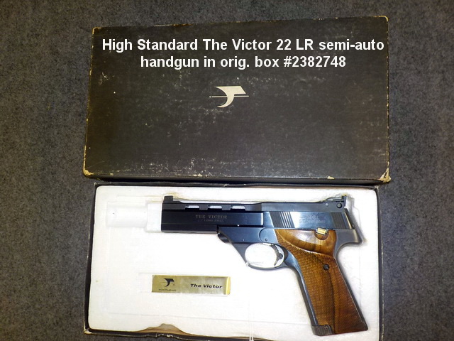 hammered shotgun, High Standard The Victor 22 LR semi-auto handgun in orig. box