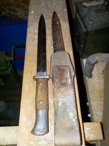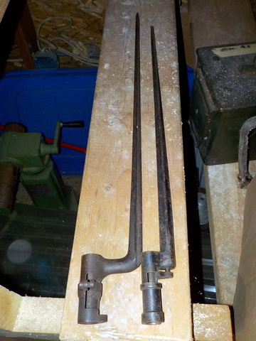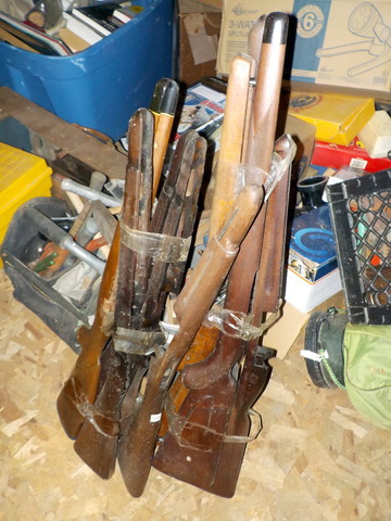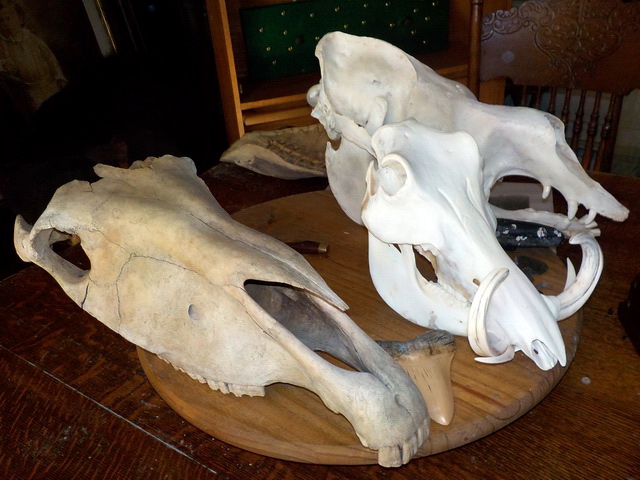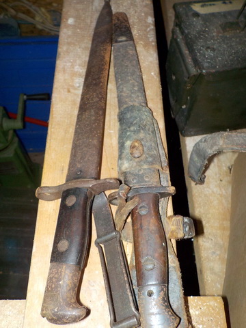 fossils, carved wooden animals, Lots of Military Bayonets in sheaths including