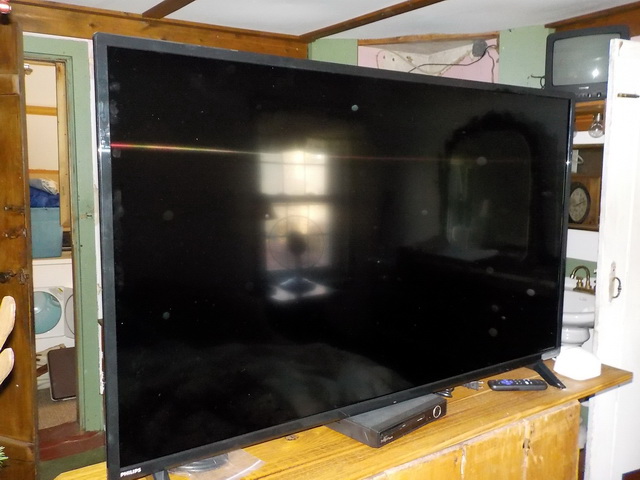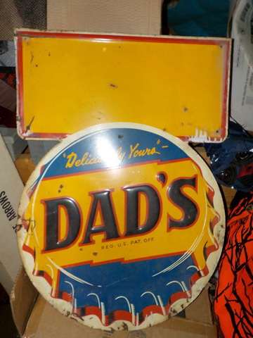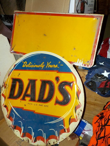 flat screen TV, plus other furniture….Vintage Dad’s Metal Root Beer Sign, old