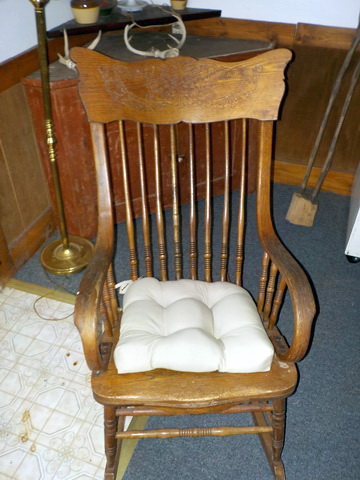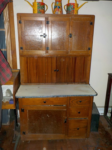 chair, antique oak Hoosier cupboard, 6’ antique oak kitchen cupboard, antique
