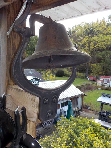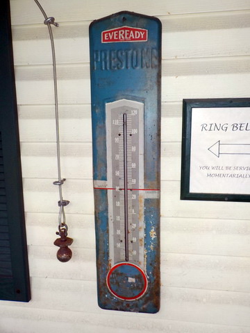Prestone Eveready metal thermometer, (3) cast iron bells w/ yokes, over (100)